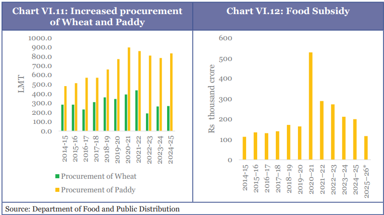 - Ensuring food and nutrition security: Distribution of fortified food, enabling greater inclusiveness through Aadhaar-based deduplication and One Nation One Ration Card (ONORC) portability, expanding direct subsidy delivery via Direct Benefit Transfer (DBT).