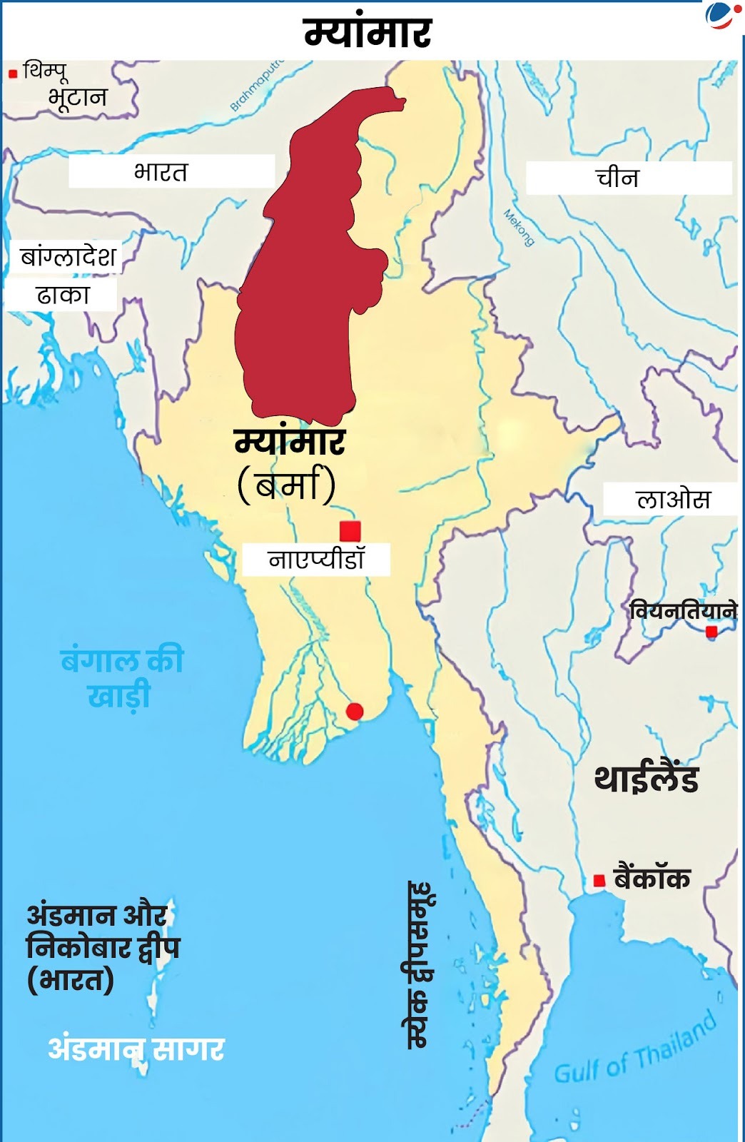 म्यांमार (सागाइंग क्षेत्र) | म्यांमार से दस लाख से अधिक रोहिंग्या मुसलमान अब बांग्लादेश में शरणार्थी के रूप में रह रहे हैं। बांग्लादेश में इनके मानवाधिकारों का उल्लंघन किया जा रहा है। |