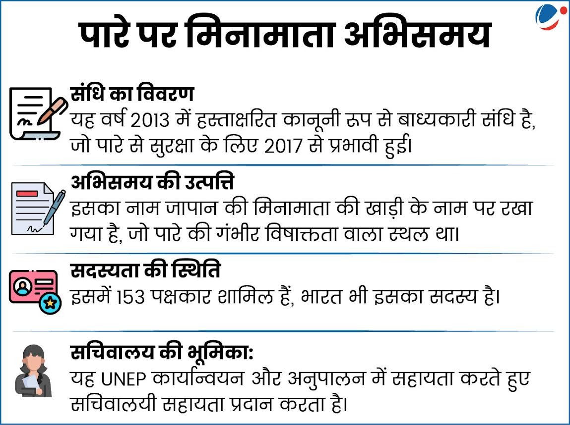 यह निर्णय ‘पारा पर मिनामाता अभिसमय (Mercury)’ के पक्षकारों के छठे सम्मेलन (COP-6) में जेनेवा में लिया गया। इस निर्णय का उद्देश्य पारे से होने वाले प्रदूषण को कम करना है। इसके साथ ही, त्वचा को निखारने वाले पारा-मिश्रित उत्पादों का उपयोग समाप्त करने के लिए वैश्विक प्रयासों को भी तेज करने पर सहमति बनी।