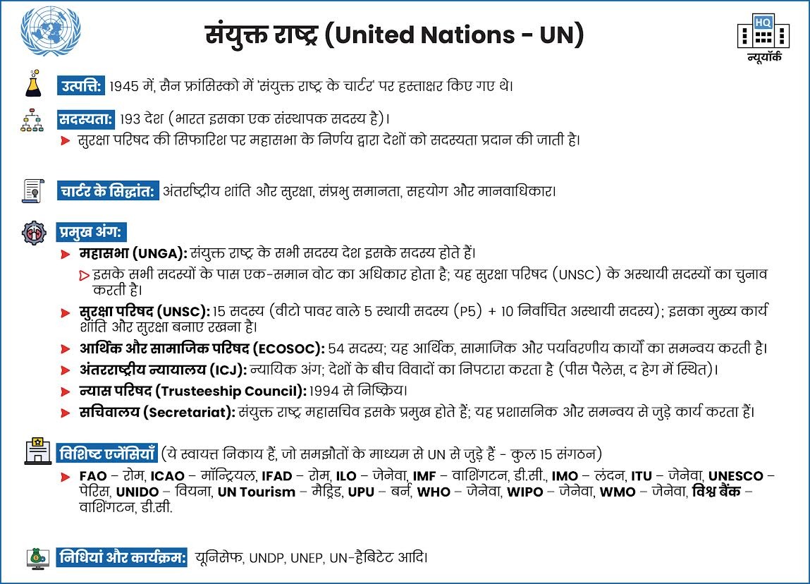 - नई वैश्विक चुनौतियां: साइबर सुरक्षा, AI संबंधी नैतिकता जैसे नए मुद्दों पर प्रभावी ढंग से प्रतिक्रिया देने के लिए संयुक्त राष्ट्र के पास विशेष निकायों और पर्याप्त संसाधनों की कमी है।