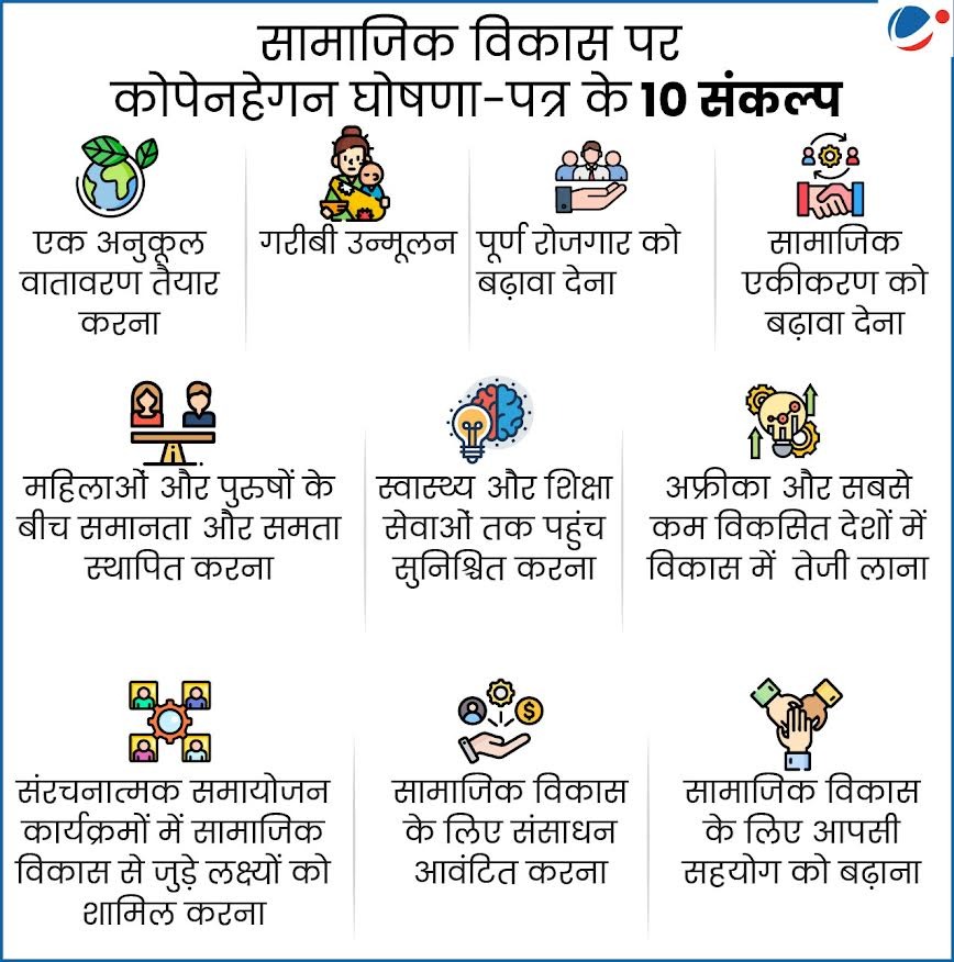 - प्रथम विश्व सामाजिक विकास शिखर सम्मेलन 1995 में कोपेनहेगन, डेनमार्क में आयोजित हुआ था।