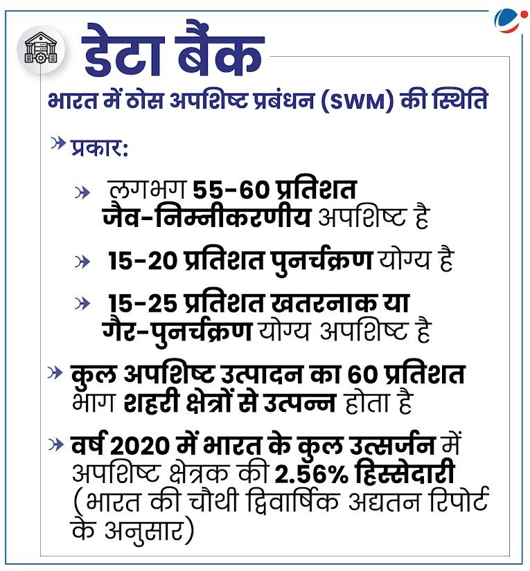 - केवल 60–70% अपशिष्ट का ही संग्रह हो पाता है, और मात्र 15–20% अपशिष्ट का ही निस्तारण किया जाता है।
