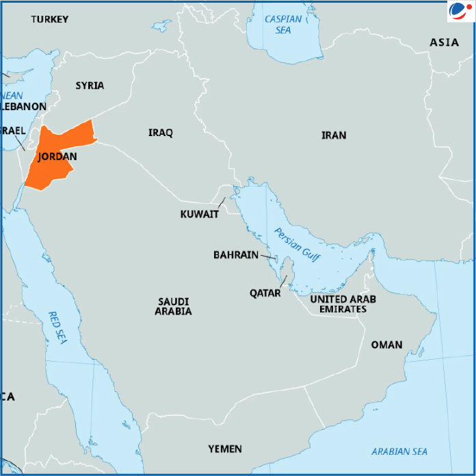 - सीमाएं: इसकी सीमाएं उत्तर में सीरिया, पूर्व में इराक, दक्षिण और दक्षिण-पूर्व में सऊदी अरब तथा पश्चिम में इजरायल एवं वेस्ट बैंक से लगती हैं।