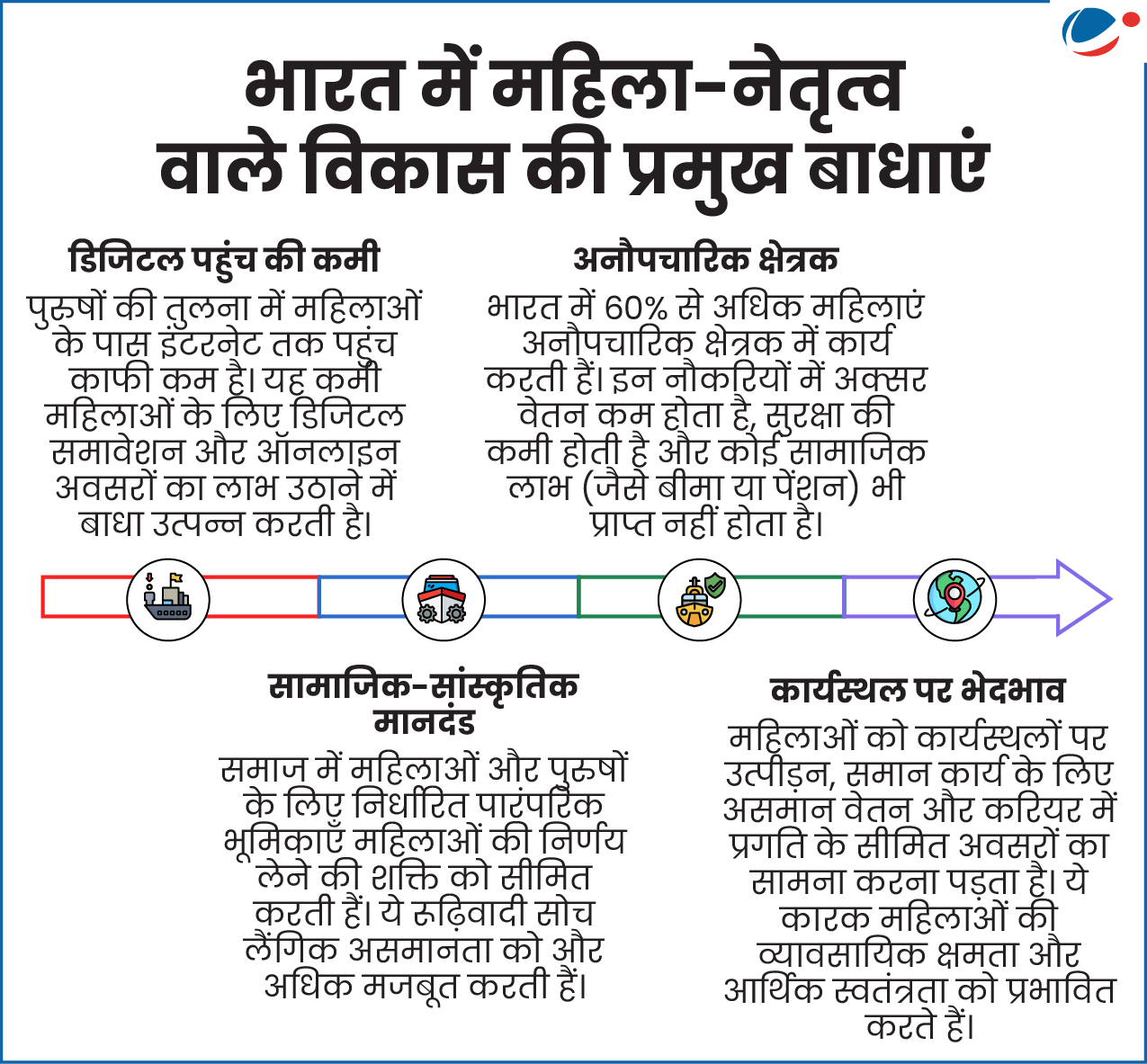 - भारत का विकास दृष्टिकोण अब 'महिलाओं के विकास' से बदलकर 'महिला-नेतृत्व वाला विकास' हो गया है। यह महिलाओं को आर्थिक और सामाजिक प्रगति के चालक के रूप में मान्यता देता है।