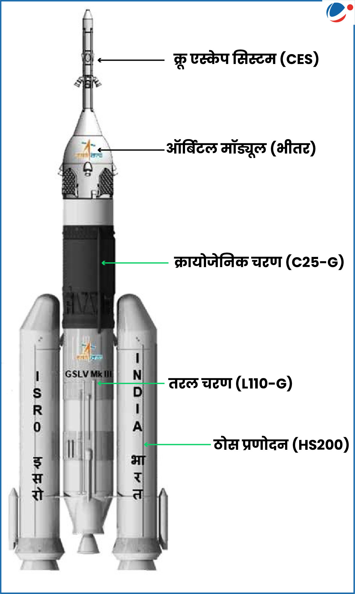 - क्रू एस्केप सिस्टम (CES): यह एक प्रकार का सुरक्षा तंत्र है जिसे रॉकेट के प्रक्षेपण के दौरान कुछ भी गलत होने की स्थिति में अंतरिक्ष यात्रियों की जान बचाने के लिए तैयार किया गया है।