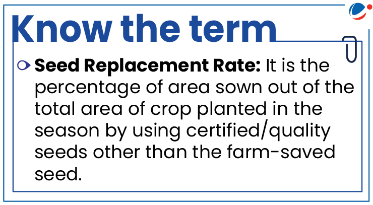 - Low Seed Replacement Rate (SRR): In India, many open pollinated crops in food grains and oilseeds, the SRR is less than 25%-30%.