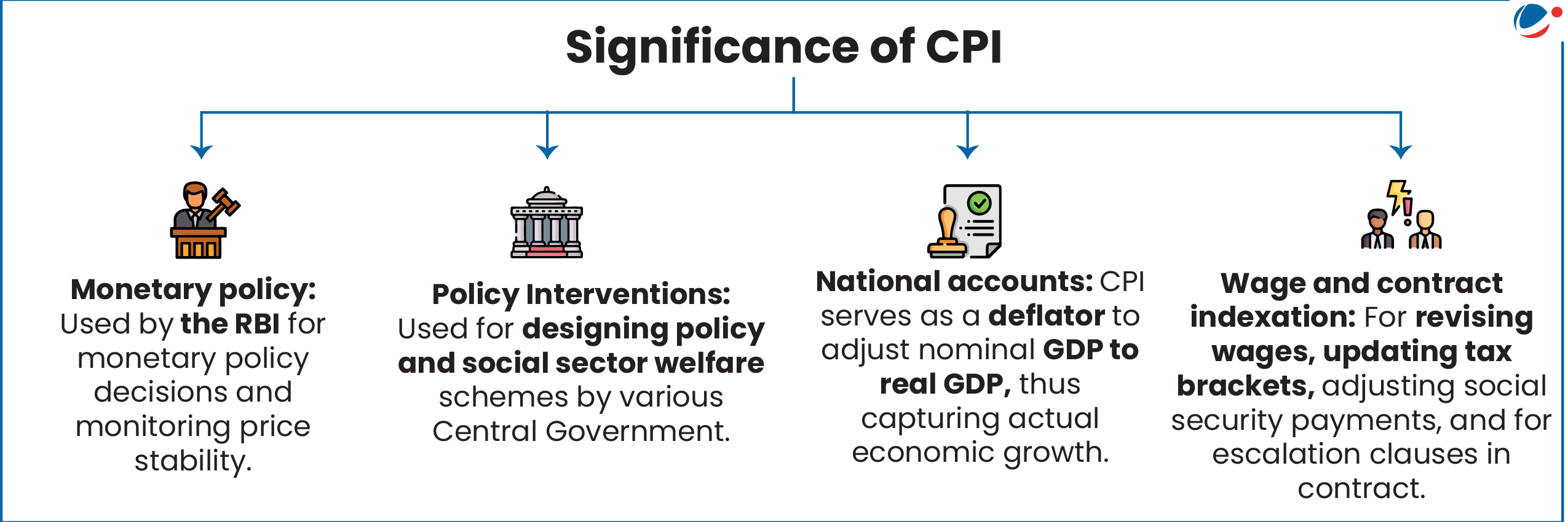 - Formula: For compiling CPI, Laspeyre's Index Formula is used, which is based on three elements: