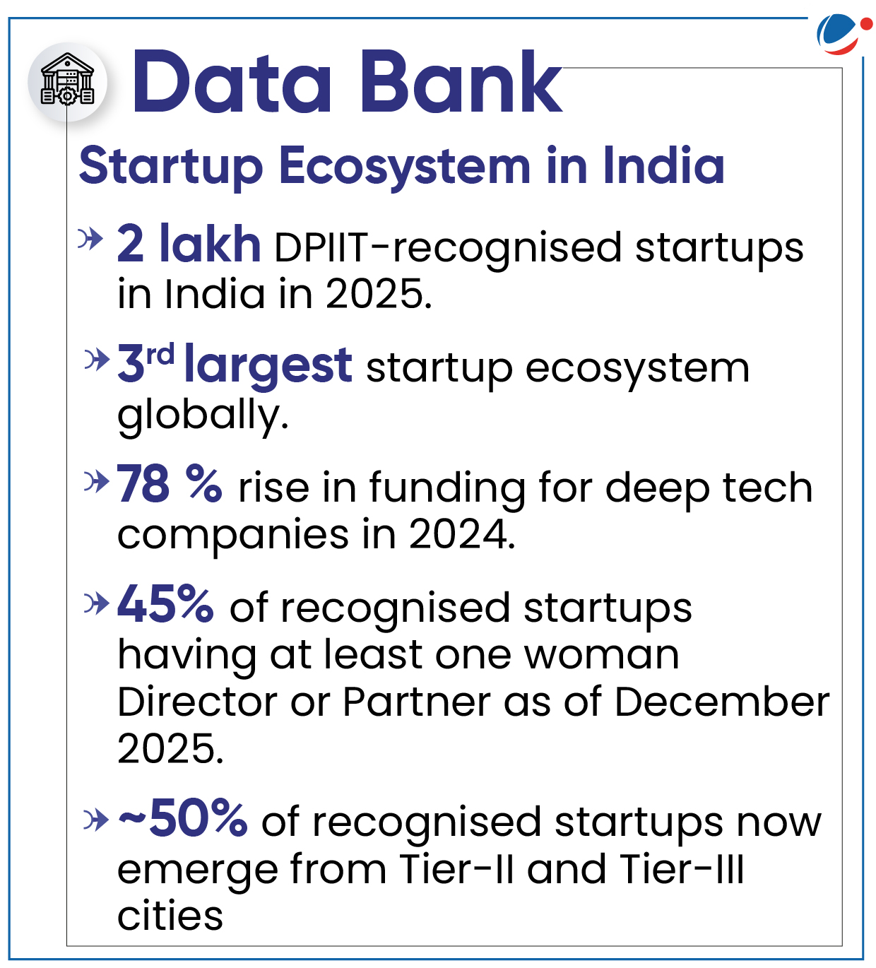 - Employment Generation: Startups leverage India's demographic dividend to create jobs in tech, manufacturing, and services, while also generating indirect opportunities in gig work and supply chains. The NIDHI program alone has generated 1,30,000+ jobs.