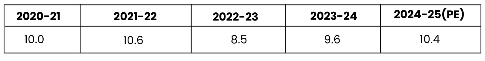 As per the provisional estimates(PE), GVA of the agriculture sector registered a growth of 10.4% during 2024-25.