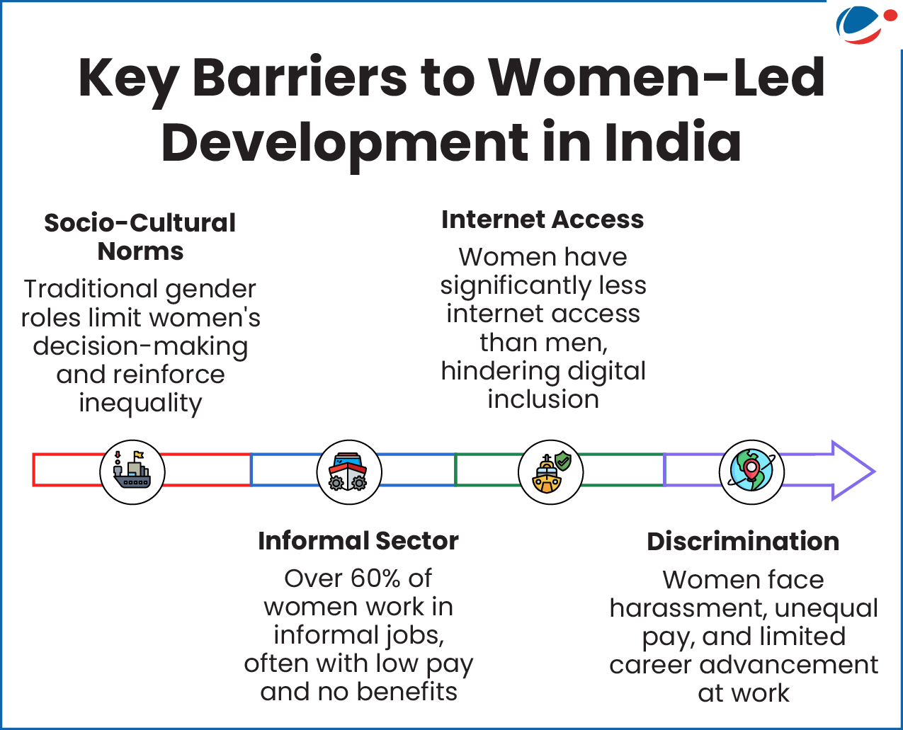 - India’s development approach has evolved from development for women to women-led development, recognising women as drivers of economic and social progress.