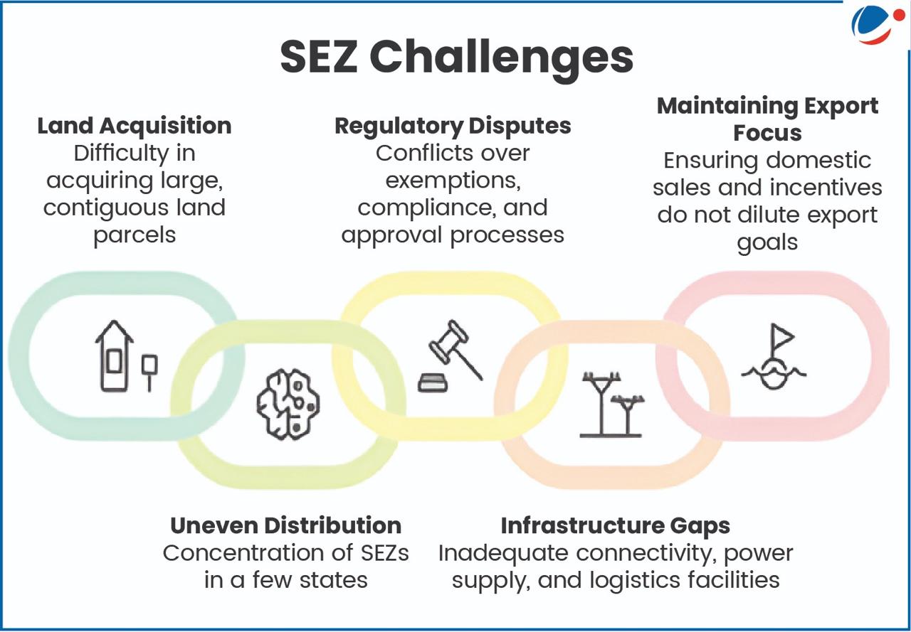 - Legal Provisions: SEZs are governed by the SEZ Act of 2005 and SEZ Rules of 2006, which provide a simplified regulatory framework.