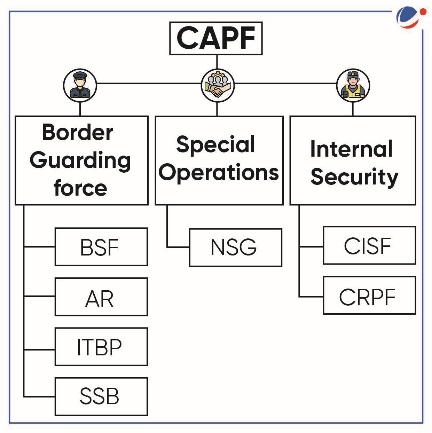 - CAPFs include Assam Rifles (AR), Border Security Force (BSF), Central Industrial Security Force (CISF), Central Reserve Police Force (CRPF), Indo Tibetan Border Police (ITBP), National Security Guard (NSG) and Seema Suraksha Bal (SSB).